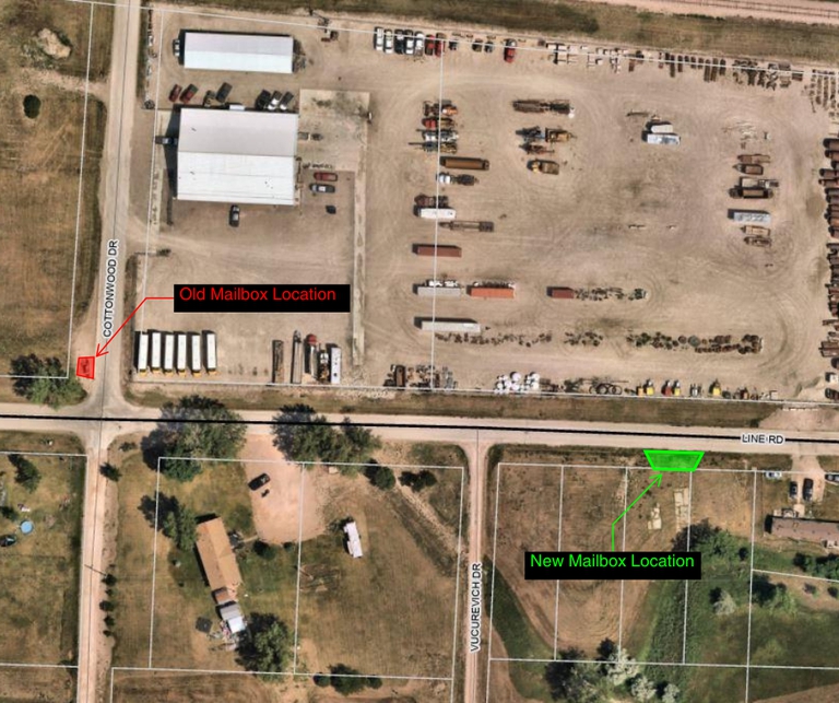 If you’ve noticed your mailbox isn’t where you left it don’t worry, it hasn’t wandered off on its own. As pictured below these Cottonwood Drive mailboxes have been relocated to their new spot on Line Road due to right-of-way requirements.